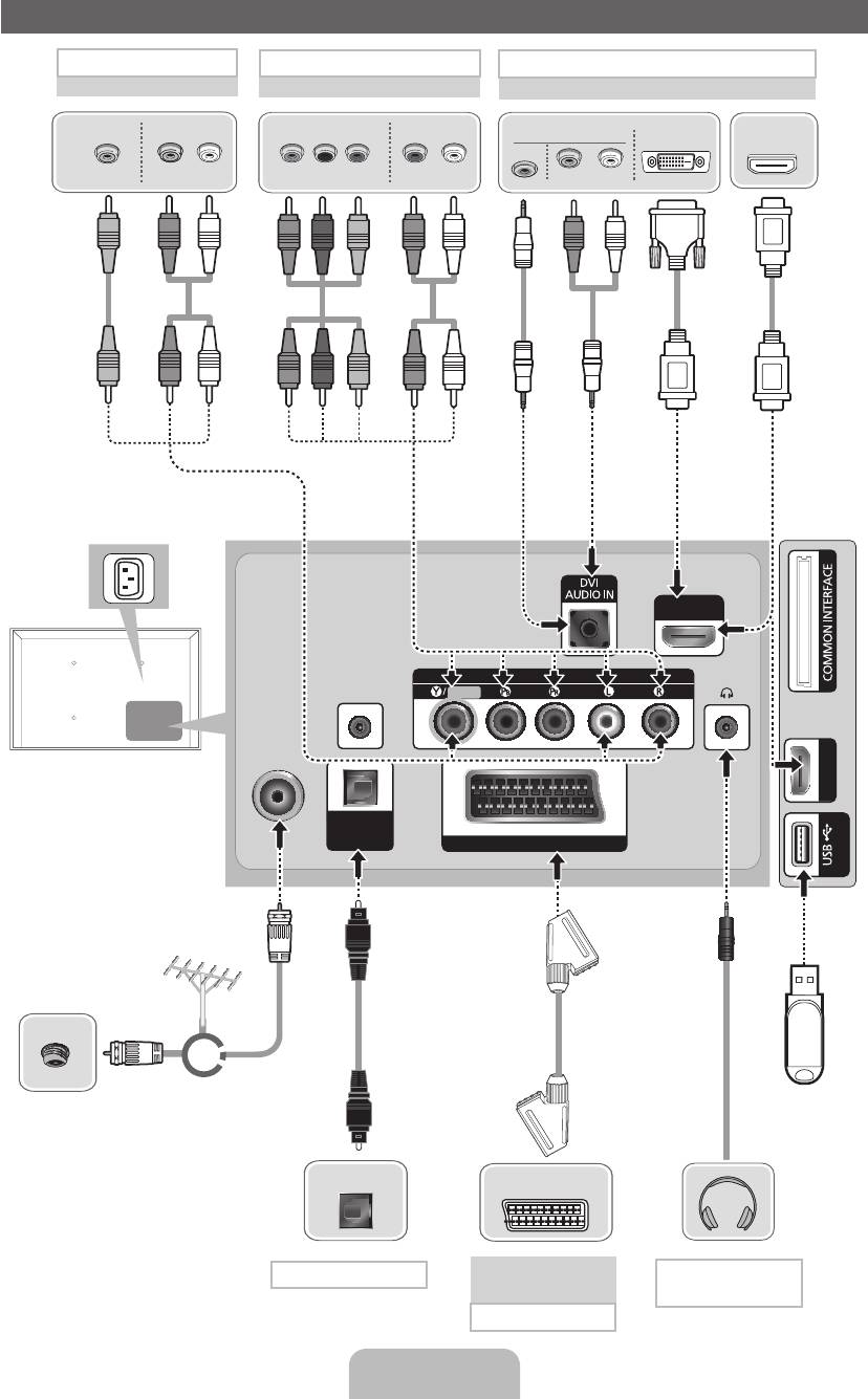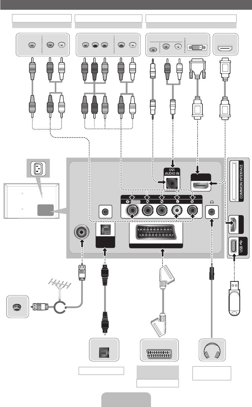– Pro připojení osobního počítače ke konektoru HDMI IN 1(DVI) kabelem HDMI-DVI musíte televizor nastavit do režimu DVI