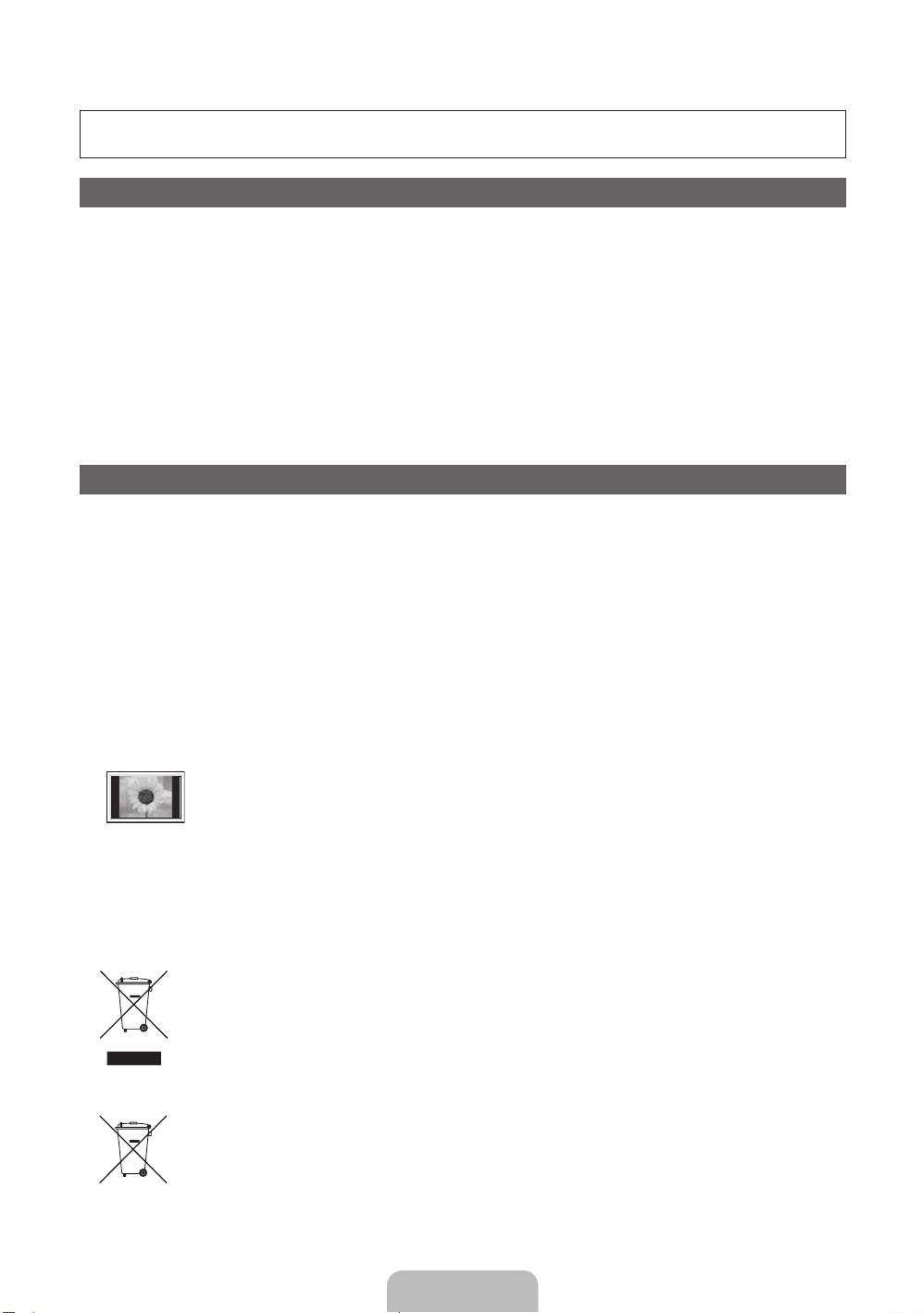 Watching the Plasma TV in 4:3 format for a long period of time may leave traces of borders displayed on the left, right and centre of