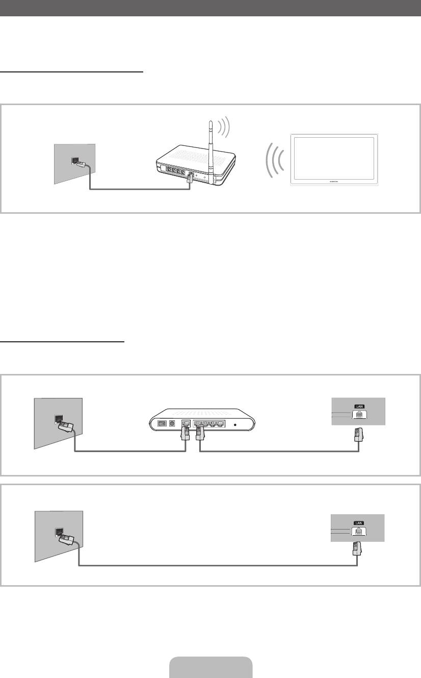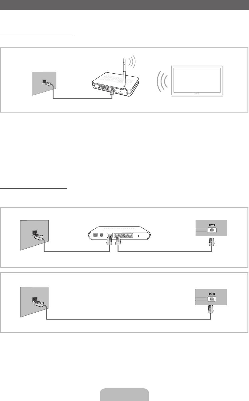 A tv-készüléket LAN hálózaton keresztül, szabványos vezeték nélküli útválasztó vagy modem használatával