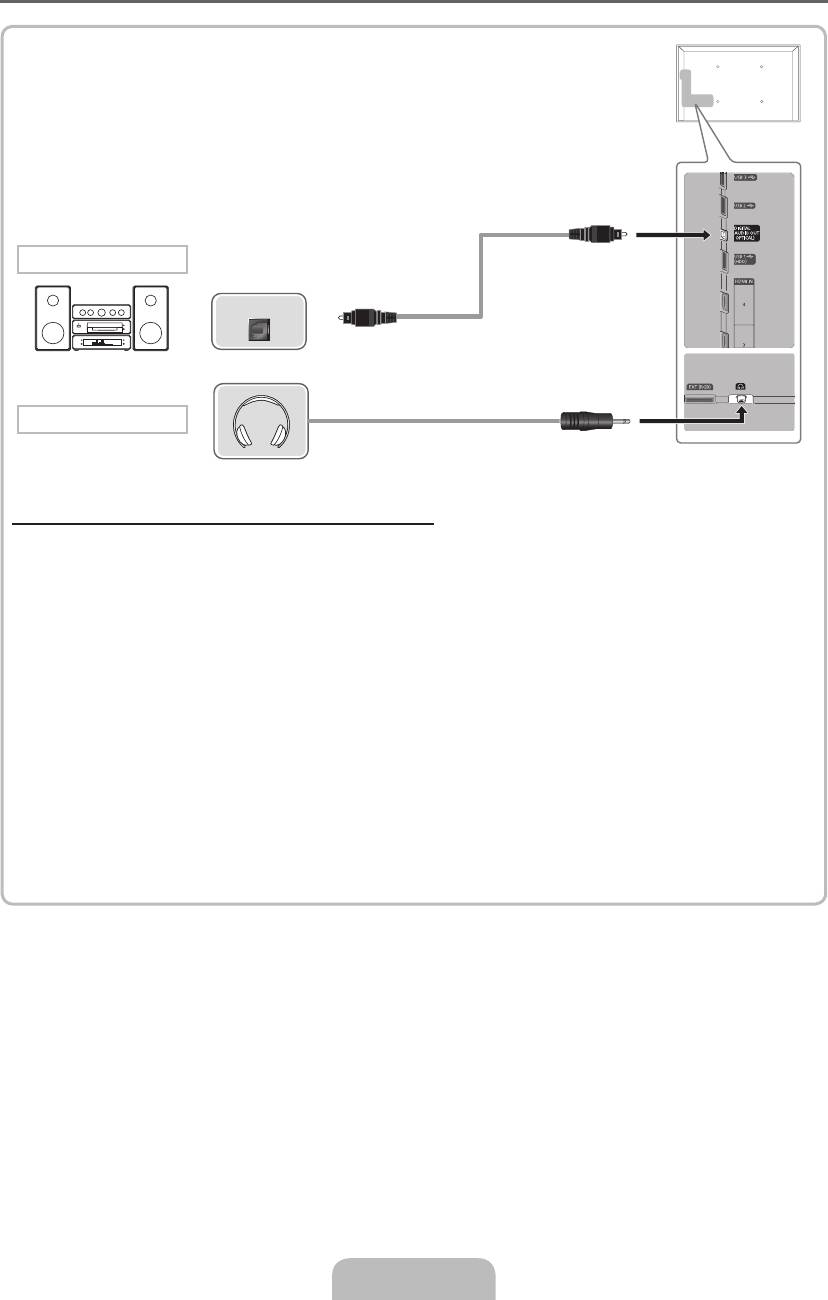 Ha a vevőegység (pl. házimozi-rendszer) be van kapcsolva, a hang a tv-készülék optikai csatlakozóján