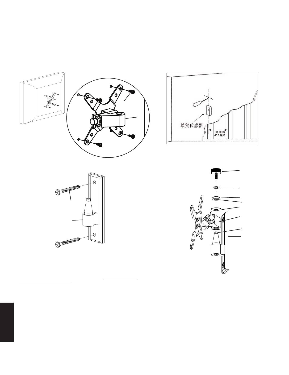 步骤 2 - 安装到墙上: 提供木立筋安装所需的五金件。其它安装所需的工具请联系当地的承包商或者从五金店购买。使用高质的墙筋传感器找到墙筋。最好先使用锥子或