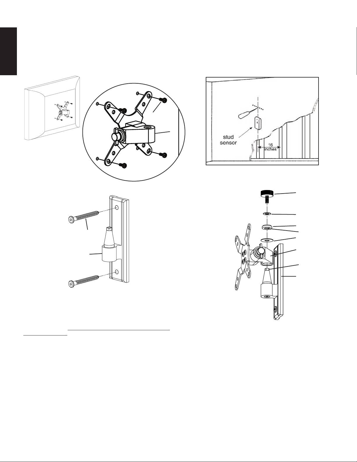 stud sensor to locate a stud. It is a good idea to verify the stud location with an awl or thin nail as shown in Diagram 2a. Use the Wall Plate (c) as a template to mark the two hole loca-
