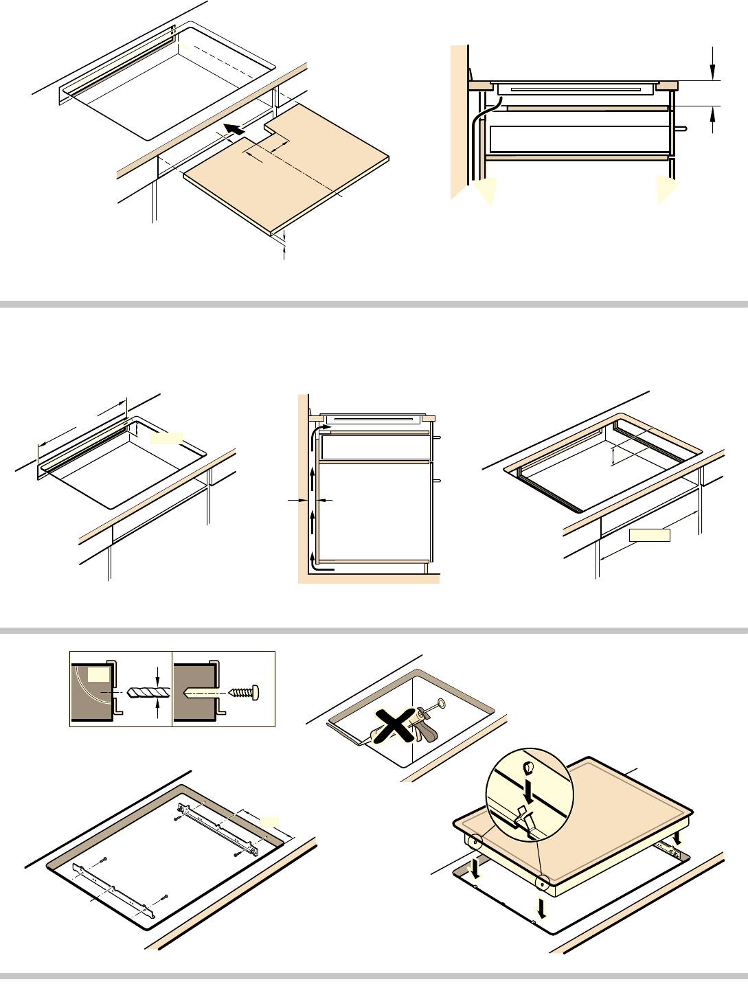 Указание: Если ширина отверстия для встраивания варочной